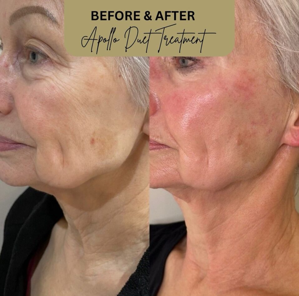 Apollo Duet Treatment is a cutting-edge facial and skin rejuvenation system that combines advanced radiofrequency (RF) technology with electroporation (needle-free mesotherapy) to deliver both immediate and long-term skin benefits.